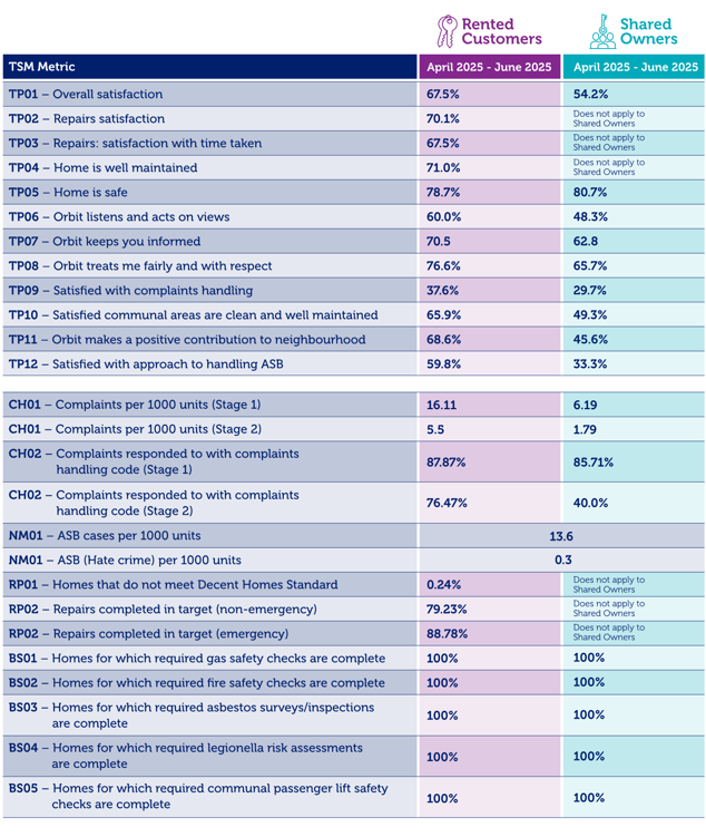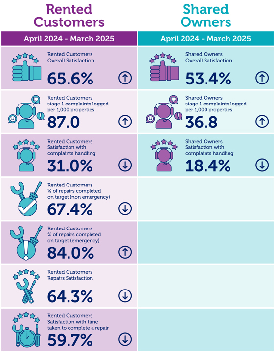 We measure how well we do when it comes to providing good quality homes and services to you, and as part of this we regularly ask you to share your views, so we can understand what we’re doing well and what we need to do to improve. This means we can focus on the improvements that matter to you.