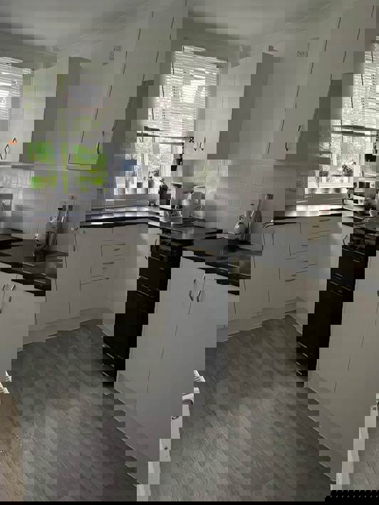 "I was contacted by Tanya in the Property Improvement team in April about having a new kitchen fitted and jumped at the chance. I had been feeling a bit fed up due to some health issues and felt it could be the boost I needed. I was offered an installation date just a few weeks later and given some simple choices about the type and colour of worktops, cupboards, tiles and flooring. I decided on a white and grey design to brighten up my kitchen.